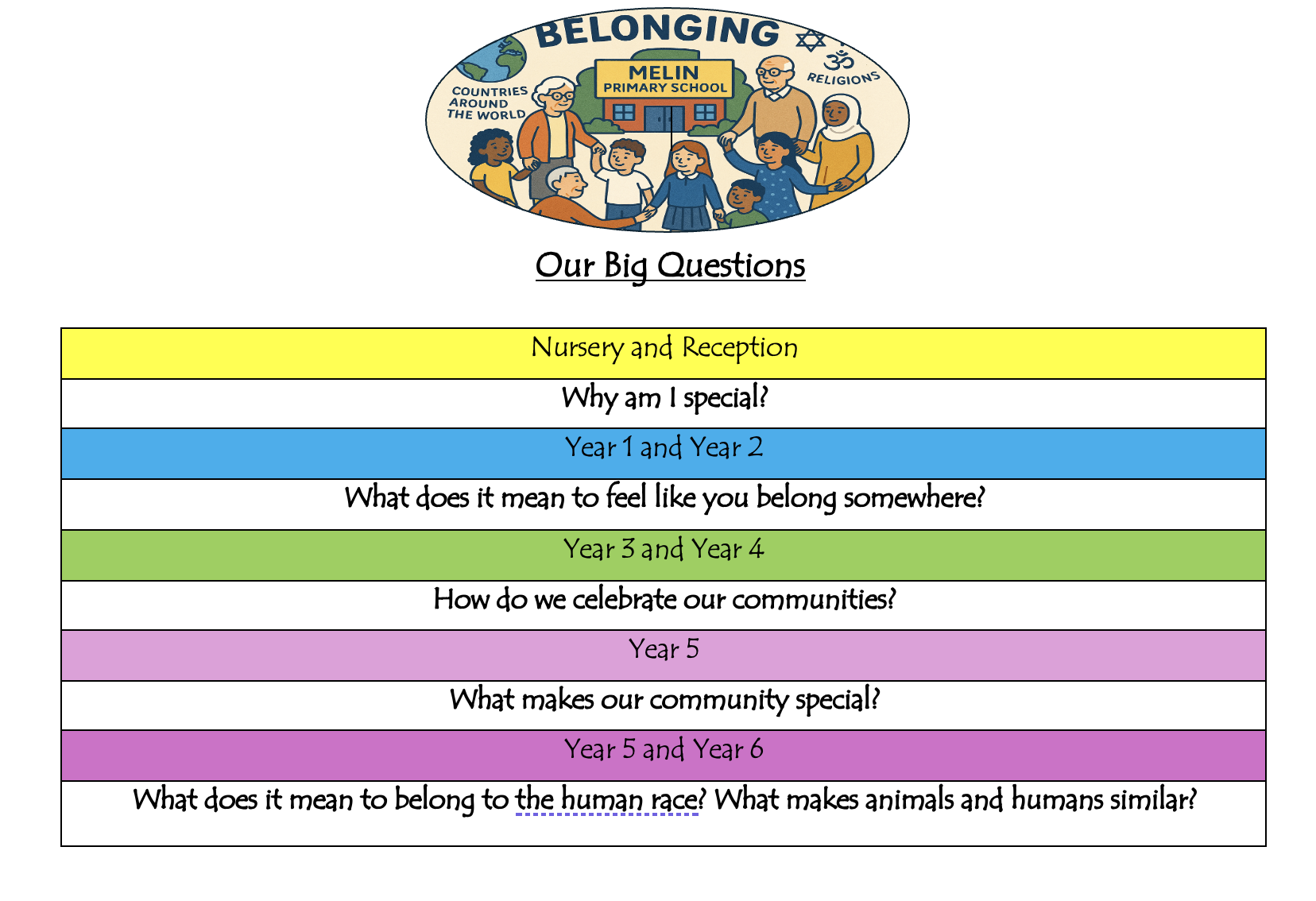 This year, our teaching and learning will be guided by a whole school concept, providing a consistent theme across all year groups. Each year group will explore this concept through their own unique ‘Big Idea’ question, allowing for age-appropriate inquiry and deeper understanding.